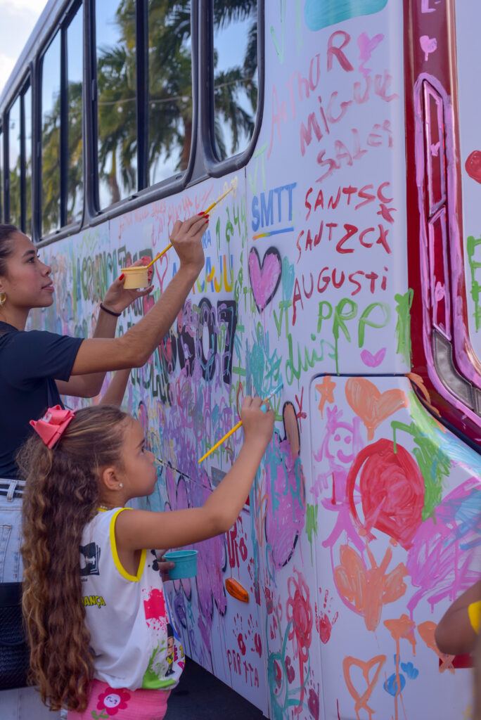 “Esse momento vai fazer parte da memória deles. Agora eles podem dizer que, quando crianças, pintaram um ônibus em Aracaju. Eles nunca tinham experimentado isso, então ter um ônibus com a marca deles rodando pela cidade é algo mágico. Além disso, foi uma oportunidade de levar um aprendizado importante para casa, utilizando a imaginação, algo tão essencial para a infância e primordial para o processo de desenvolvimento dos meus pequenos”, revela a professora.