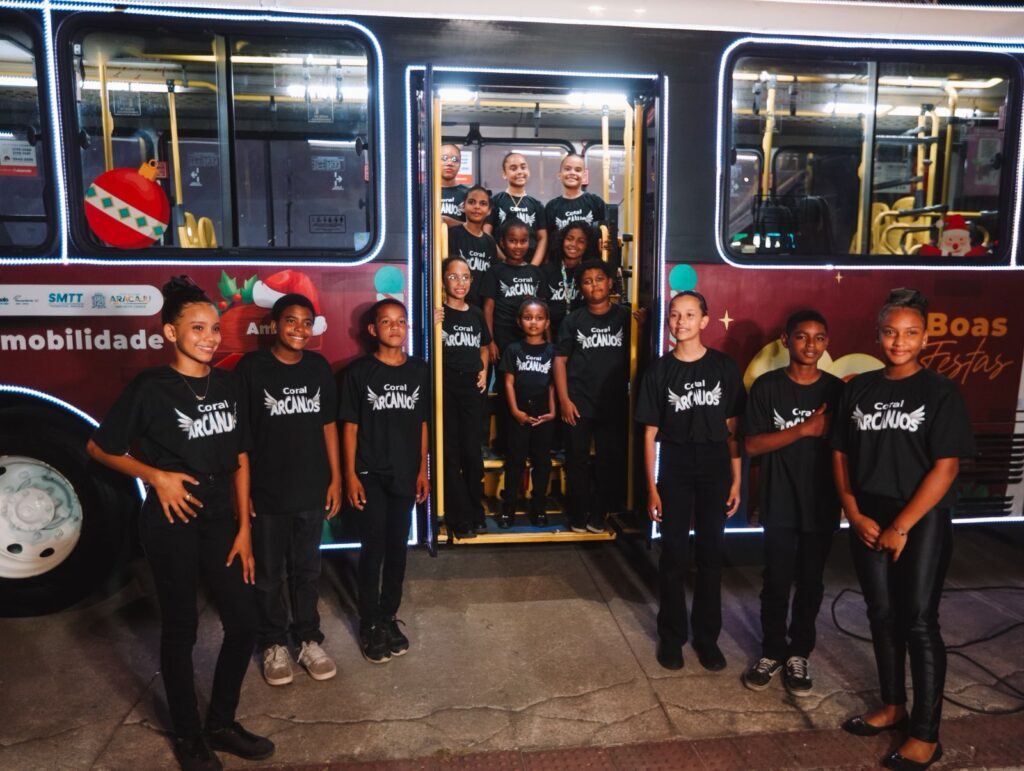 Conduzindo o Coral Infantil Arcanjos, os três ônibus natalinos chegaram à Praça Fausto Cardoso às 18h. Ao abrir das portas do veículo, os visitantes foram recepcionados por uma apresentação musical realizada pelas crianças, marcando a chegada do Natal na mobilidade da Grande Aracaju, que este ano, ganha mais dois ônibus personalizados para a comemoração, contabilizando 5 veículos temáticos.